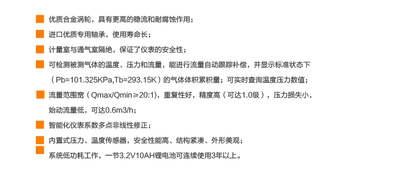 LWQ-MIK氣體渦輪流量計是吸取了國內外流量儀表先進技術優化設計,綜合了氣體力學、流體力學、電磁學等理論而自行研制的集溫度、壓力、流量傳感器和智能流量積算儀于一體的新一代高精度、高可靠性的氣體精密計量儀表。