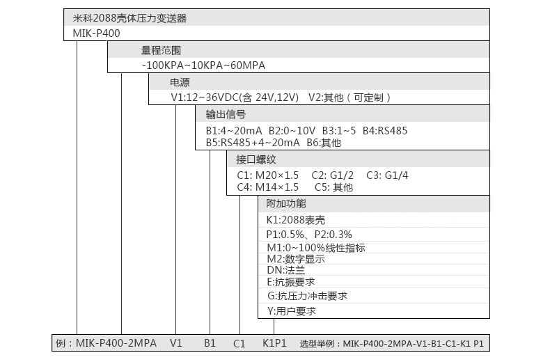 MIK-P400型工業型壓力變送器采用OEM全焊接壓力芯體,微型放大器處理電路。零點量程可遷移。其安裝接口形式,即可根據用戶的要求加工,可提供與其他品牌變送器兼容的規格。該系列產品廣泛應用于工業過程控制、液壓設備、化工等行業。針對工業現場環境比較惡劣的情況該產品有比較明顯的優勢,其防護等級達到IP67。